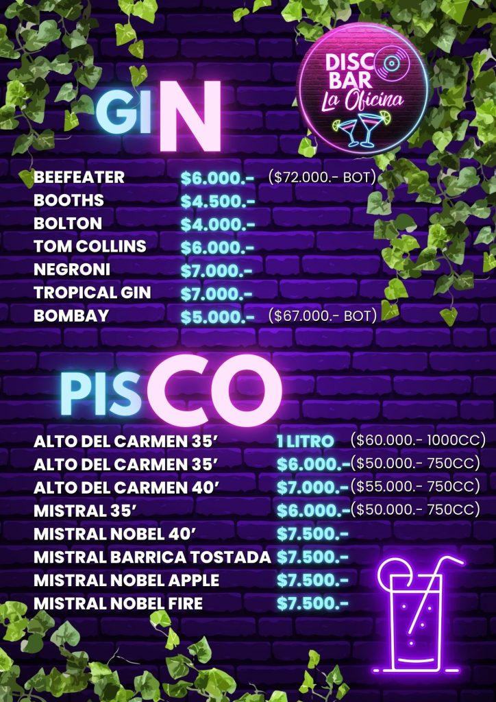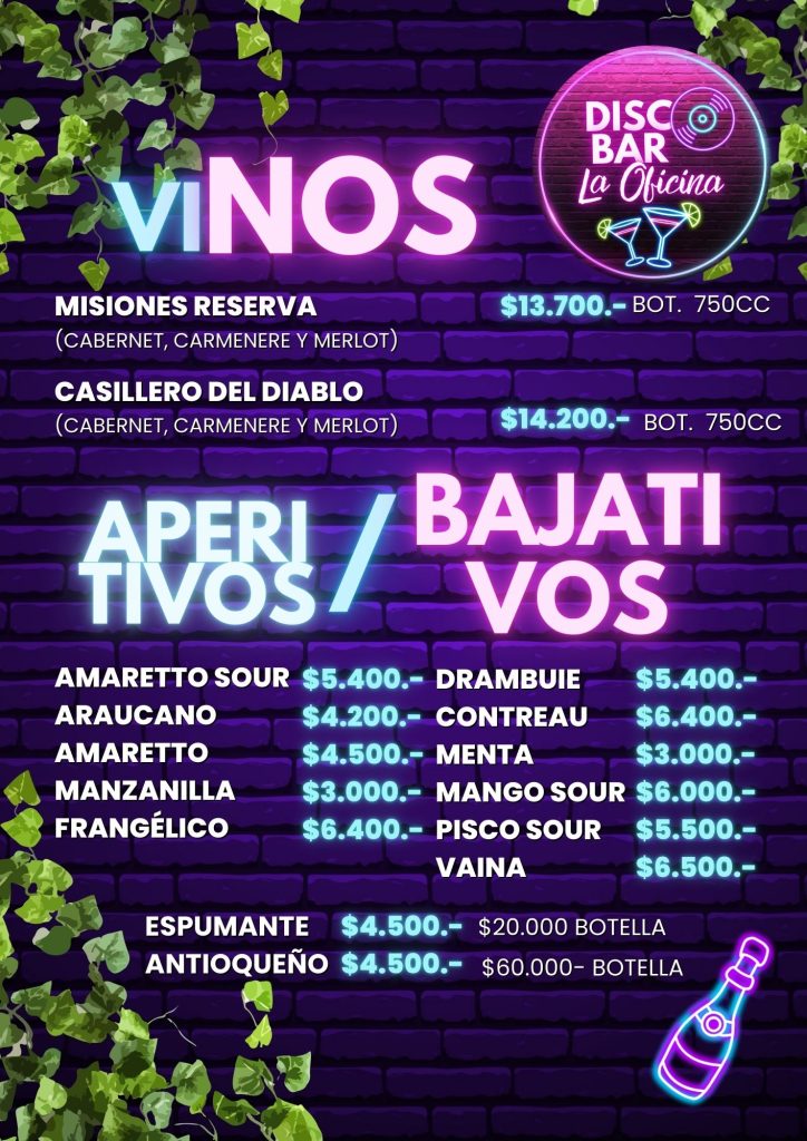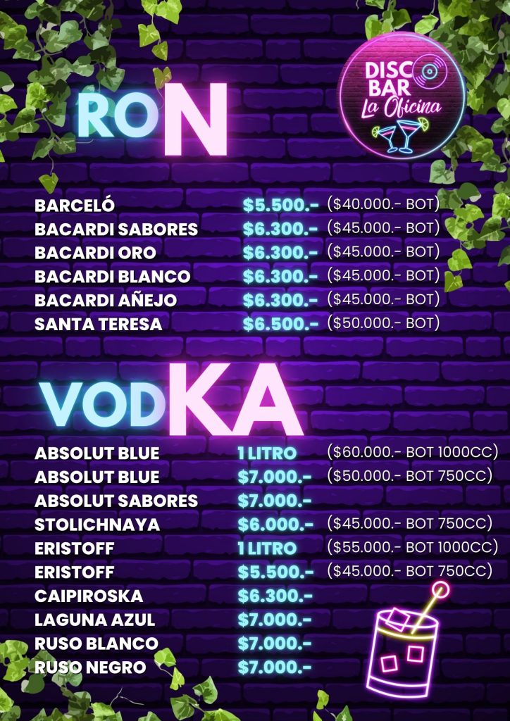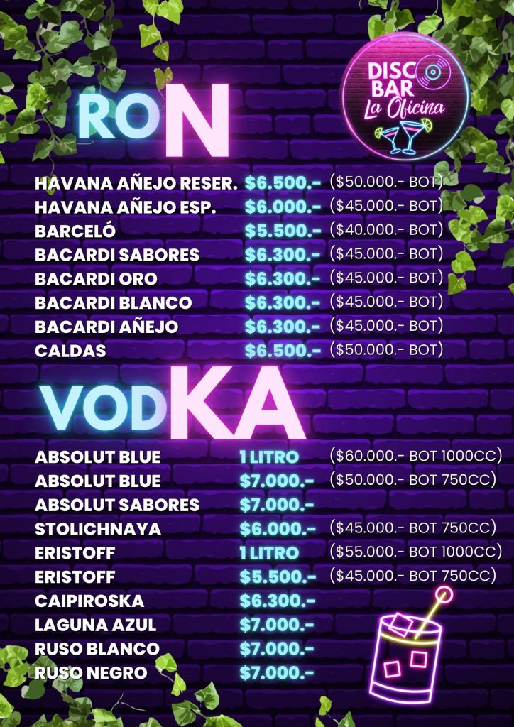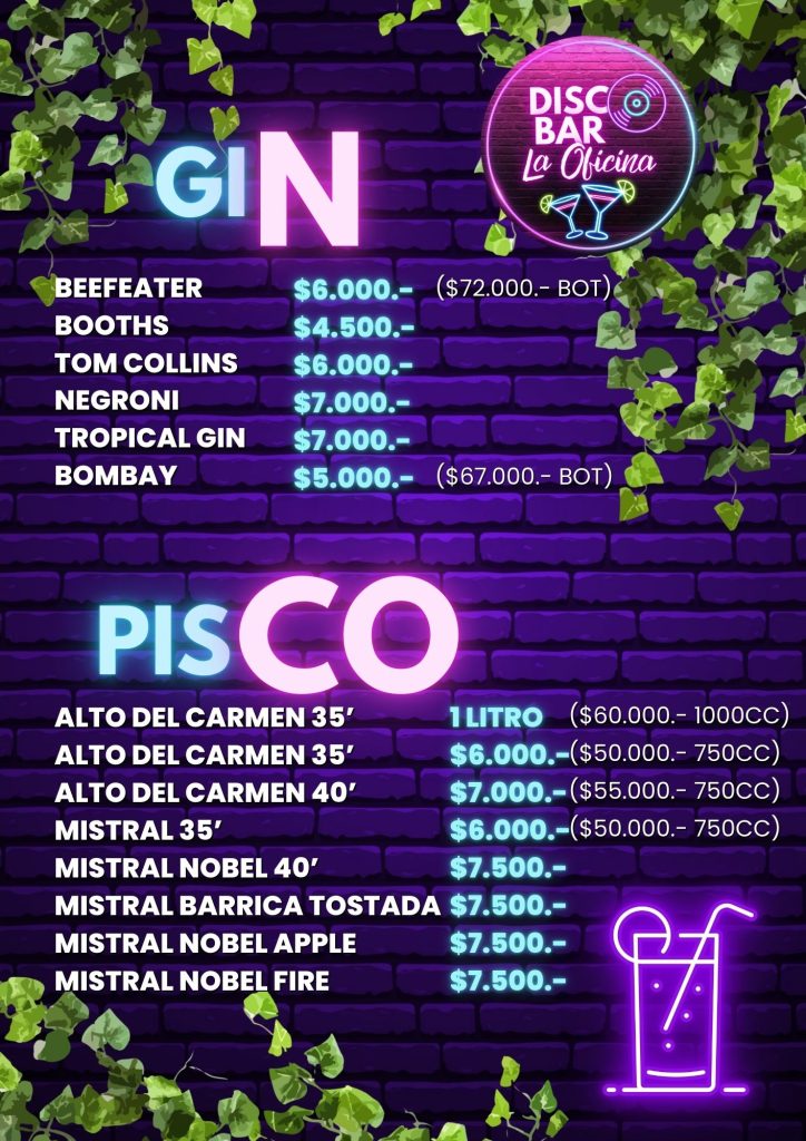 Menú DISCO BAR